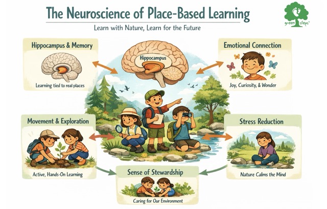 Outdoor, place-based learning helps children learn better by connecting movement, senses, emotions, and real environments. Learning in nature supports memory, attention, and emotional well-being, making learning deeper and more meaningful.